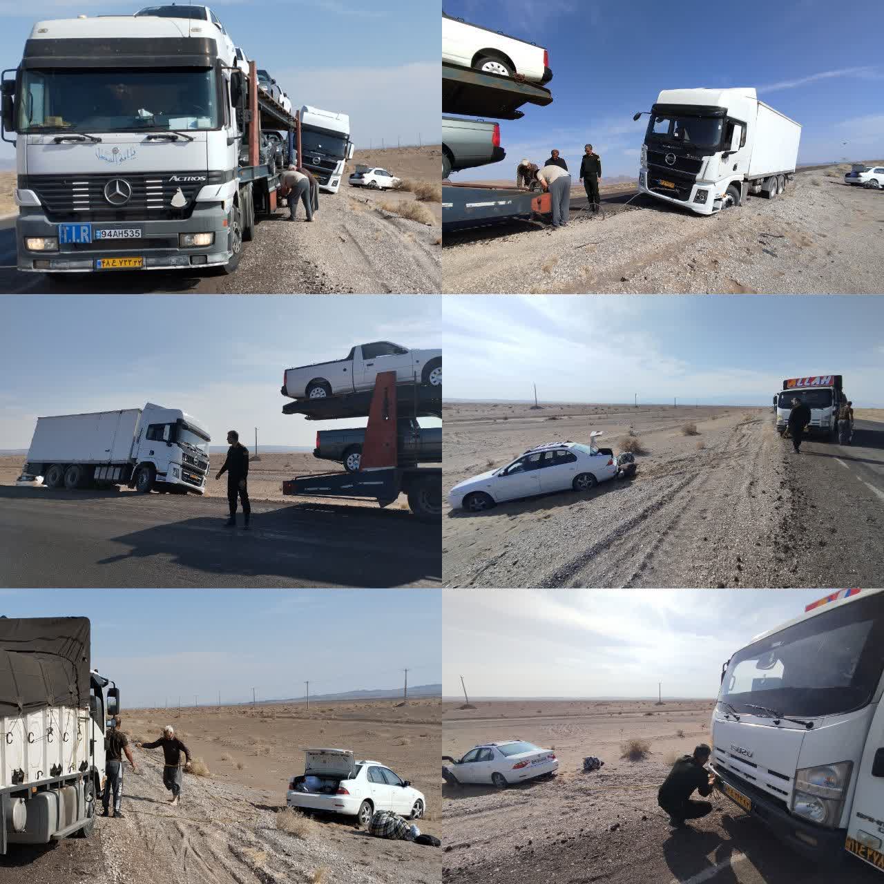 فرمانده انتظامي شهرستان "طبس" از کمک رساني ماموران انتظامي به خودرو هاي گرفتار در ماسه بادي هاي حاشيه جاده "طبس – يزد" خبر داد