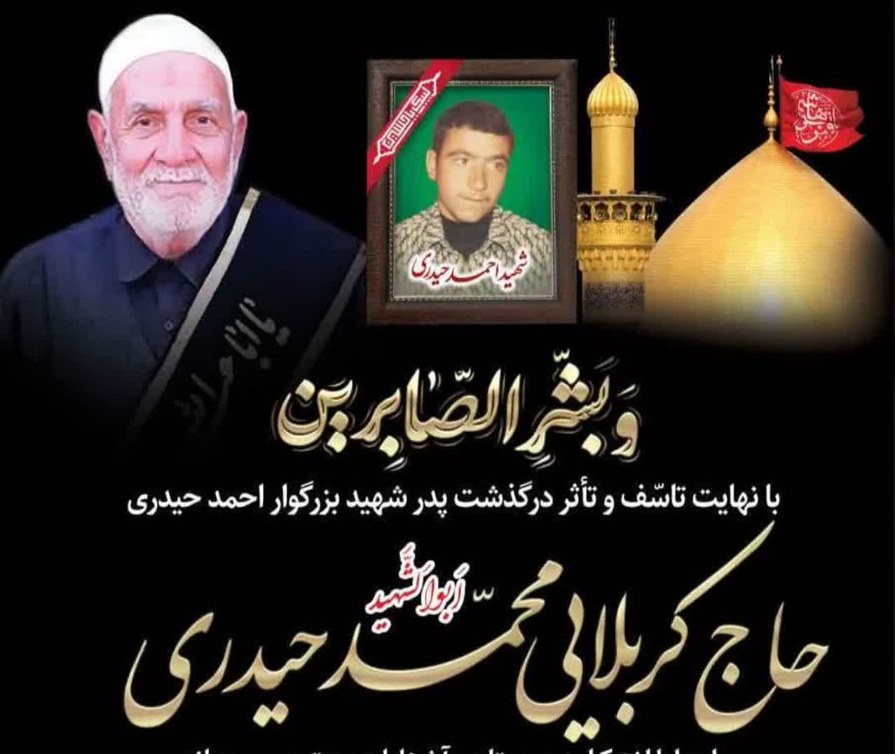 روح بلند حاج کربلایی محمد حیدری پدر بزرگوار شهید والامقام احمد حیدری به فرزند شهیدش پیوست.