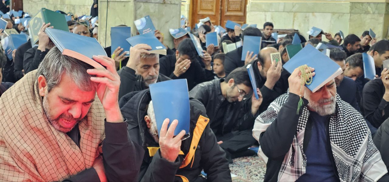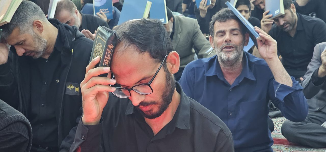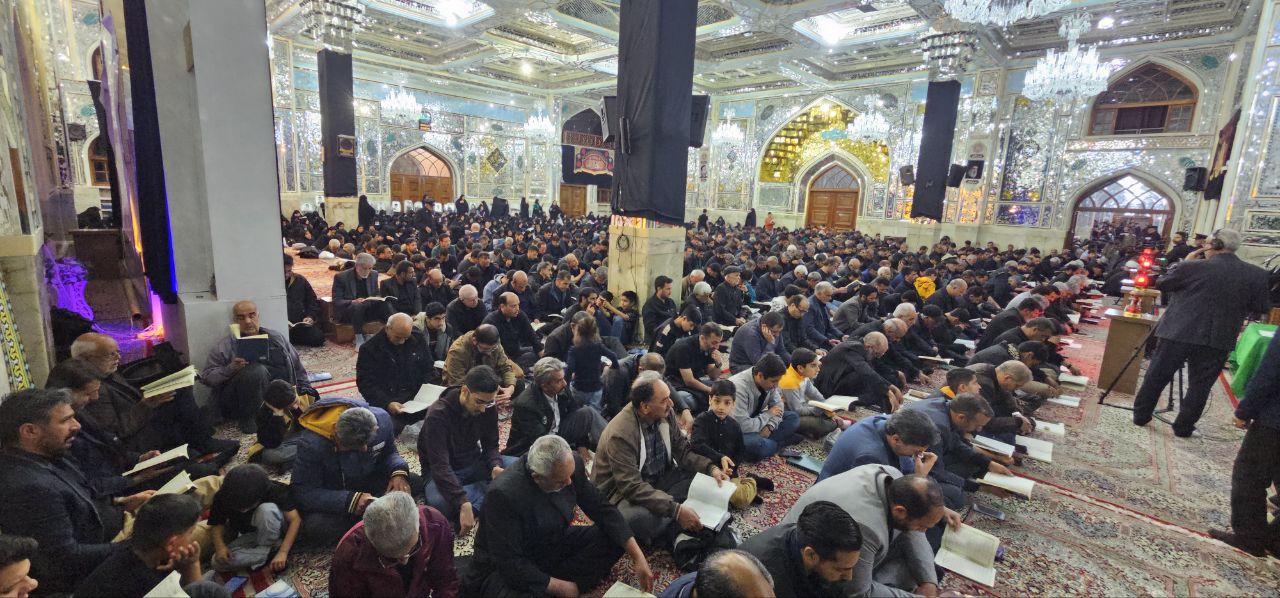 عاشقان و دلدادگان رمضان در شب ۲۱ رمضان در سوگ شهادت امام علی ع در صحن و سرای استان مبارک حضرت حسین بن موسی الکاظم ع عزاداری کردند و قرآن به سر گرفتند